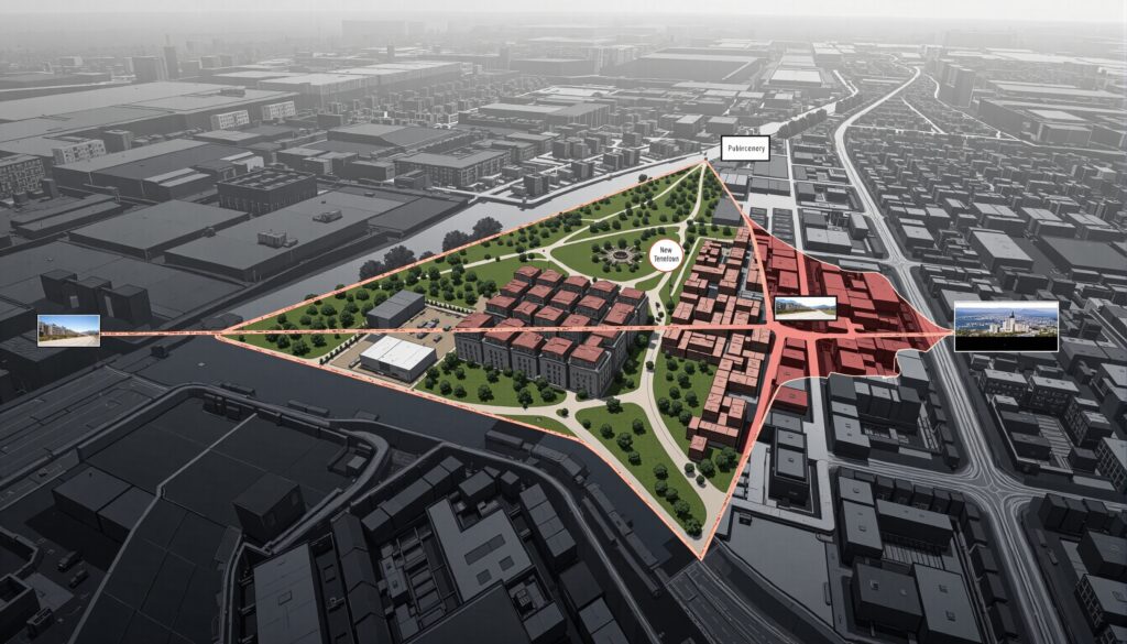Professional video production combining custom 3D animations, filmed footage, and curated stock material to create compelling visual narratives about buildings, spaces, and design processes.