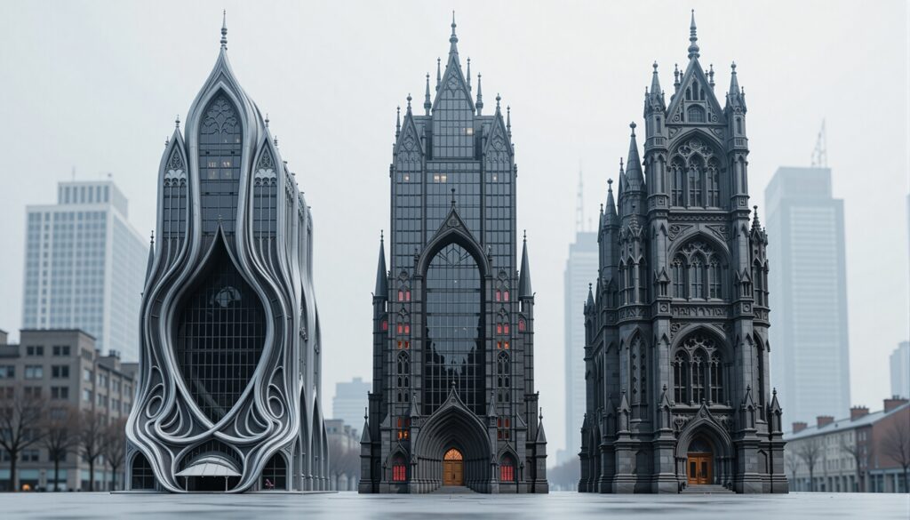 Close-up renderings of intricate architectural details and ornamentation created by AI potentially reviving or reinventing decorative traditions.