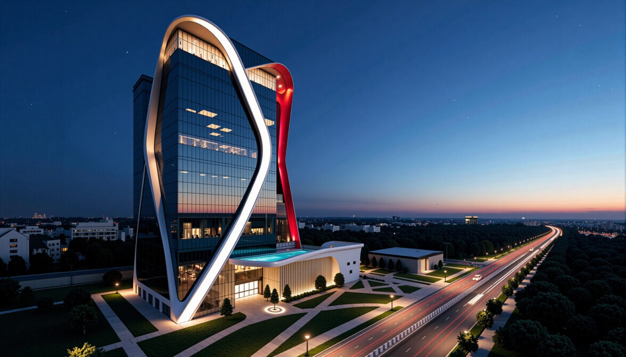 Buildings change completely after dark. Night renderings show a side that daytime visuals miss: