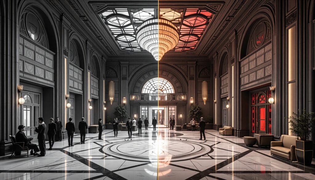 Renderings that apply the visual style of famous artworks or architectural periods to contemporary designs using AI style transfer techniques.