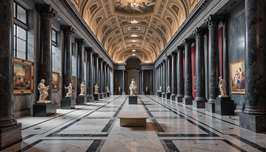 Close-up renderings of intricate architectural details and ornamentation created by AI potentially reviving or reinventing decorative traditions.