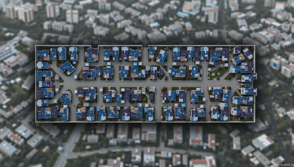 Aerial Integration combines actual aerial photographs with 3D rendered elements to create visualizations of architectural projects in their real environment. This technique helps architects and developers show how new buildings will fit into existing neighborhoods.