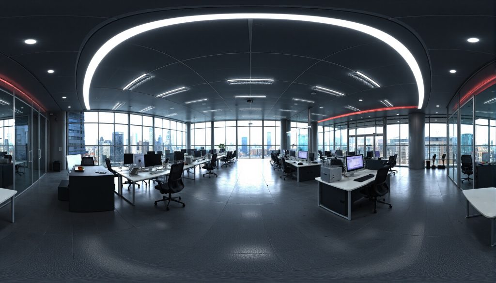 Computer-generated 360-degree panoramic images of architectural or design concepts. These renderings offer a complete view of proposed spaces or structures from a single vantage point.